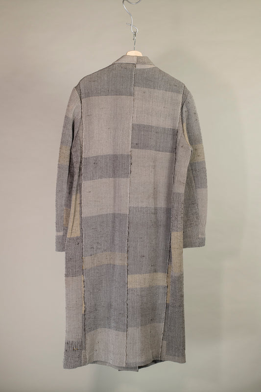 long kino coat- sakiori rag weaving / Gray