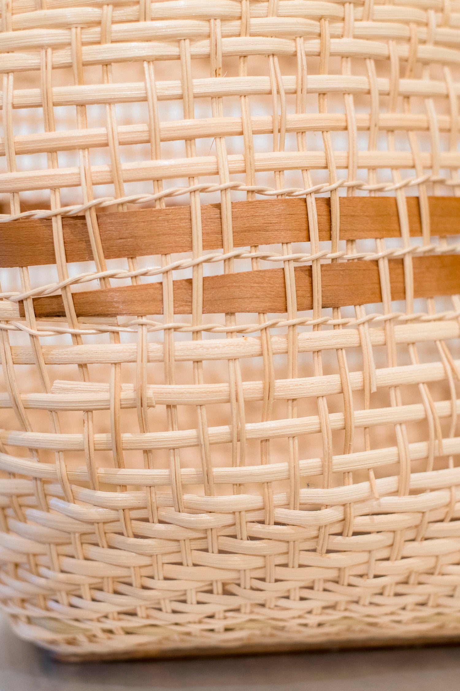it has a solid walnut base woven with bamboo and maple reed