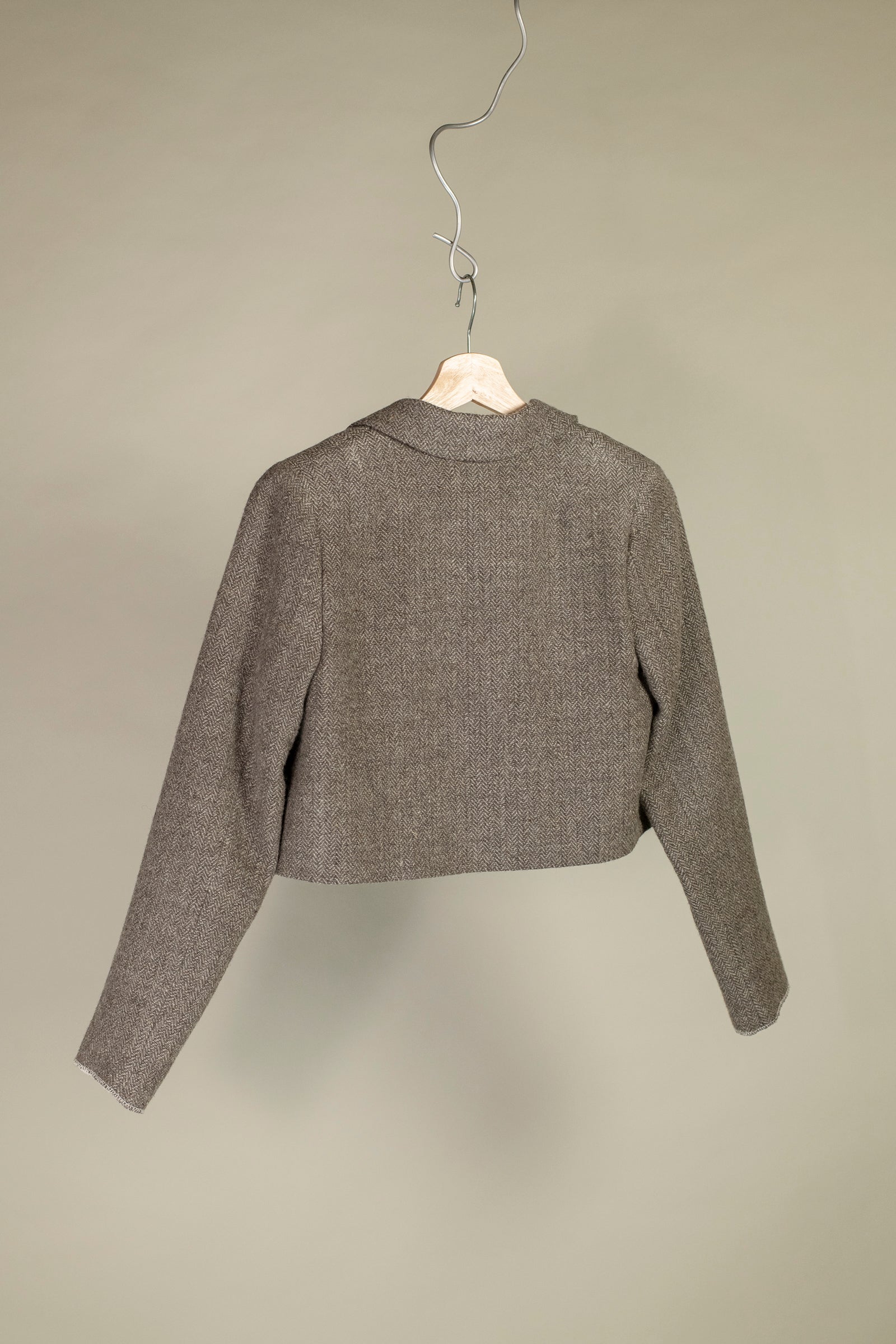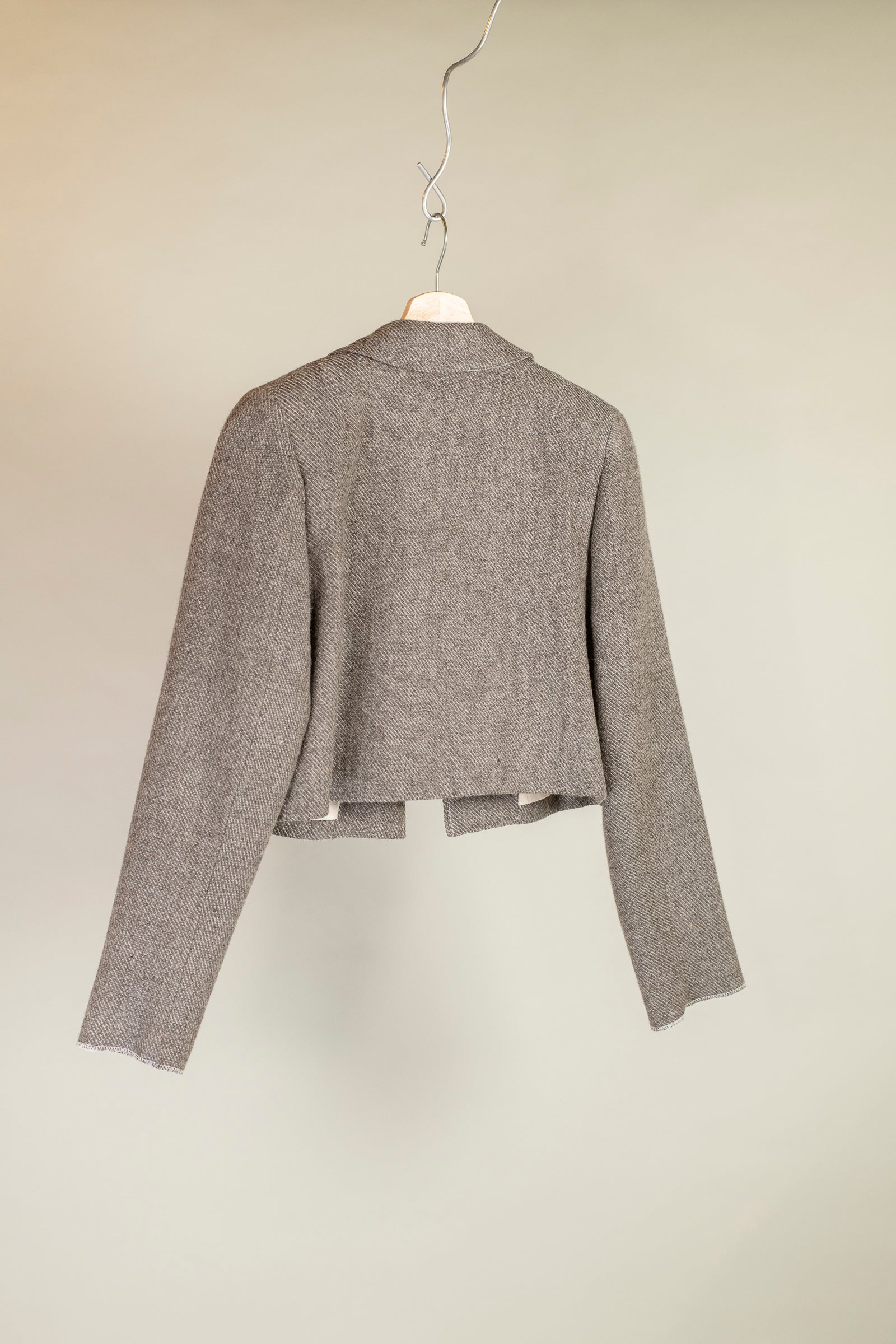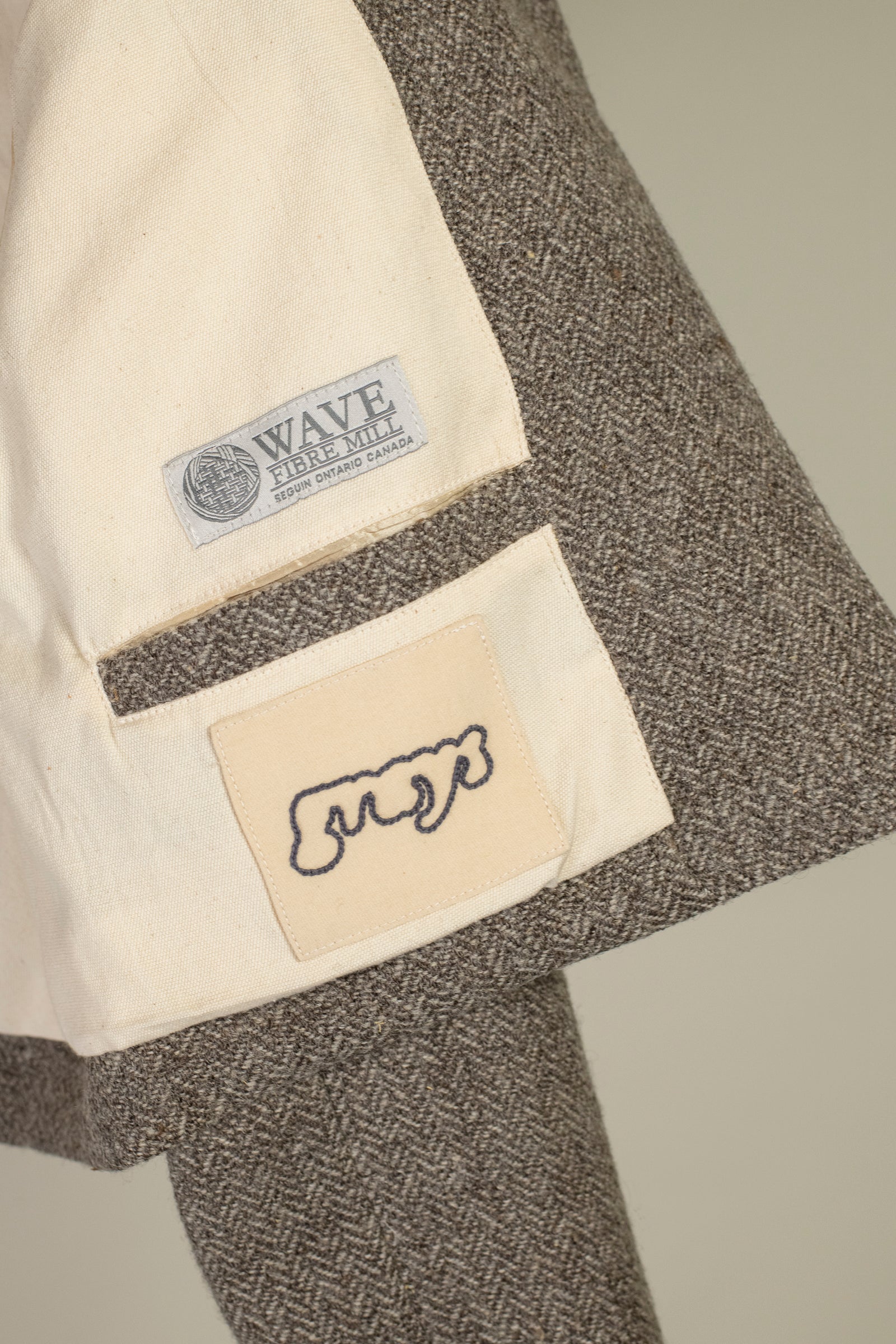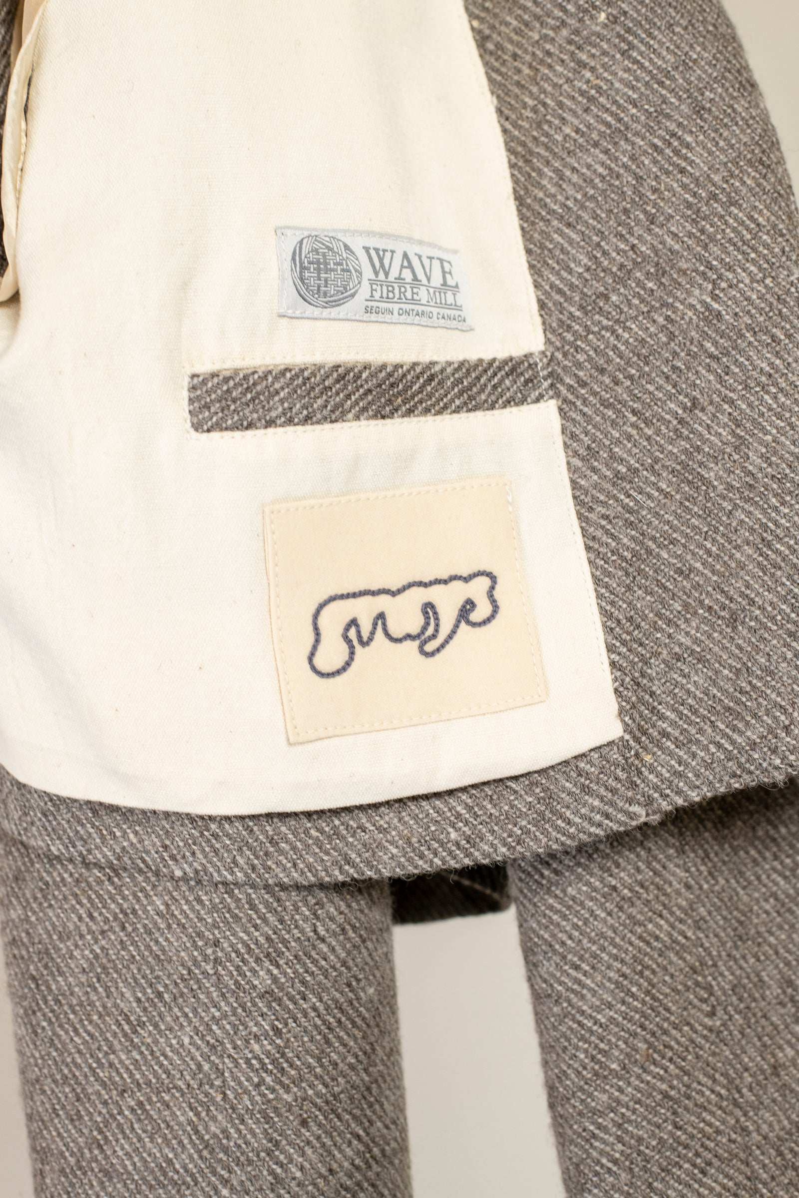 this garment is inspired by place, tradition and what we are able to do when we look inwards. the wool is grown, washed, spun and woven in ontario. all of the wool is sourced from small regenerative farms, and milled at wave fibre mill in Seguin, ON.