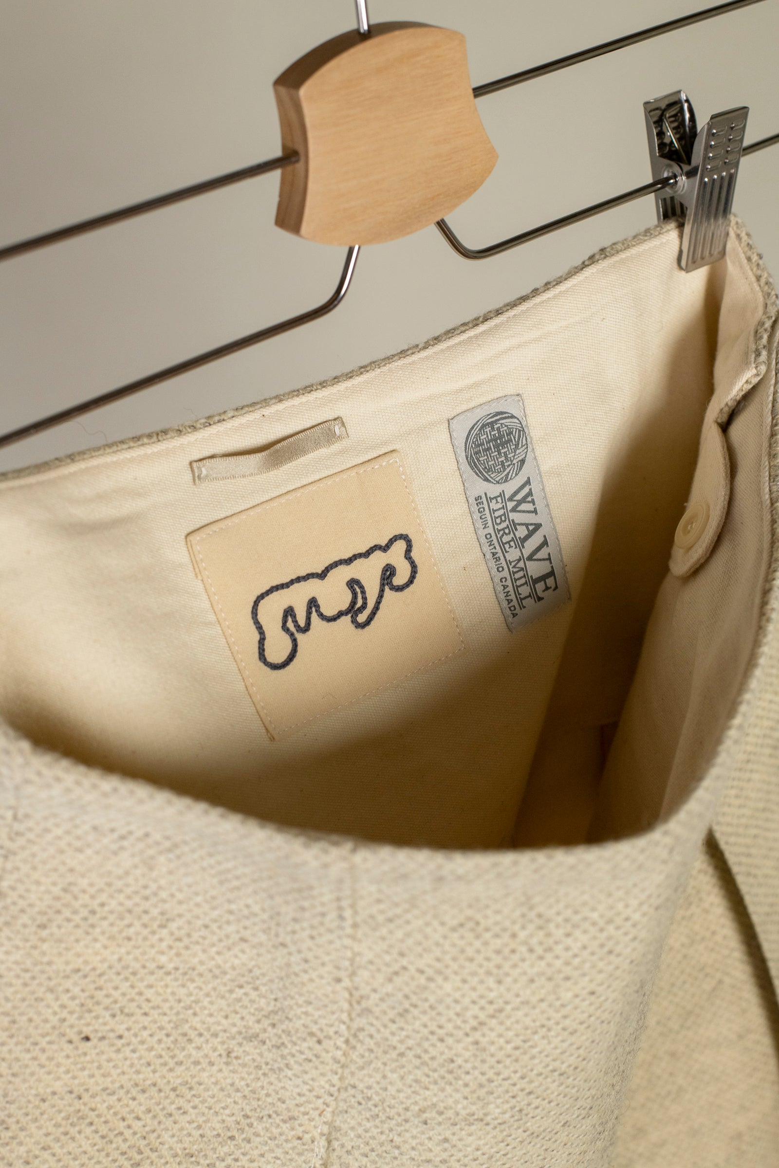 this garment is inspired by place, tradition and what we are able to do when we look inwards. the wool is grown, washed, spun and woven in ontario. the wool is sourced from small regenerative farms, and milled at wave fibre mill in Seguin, ON.