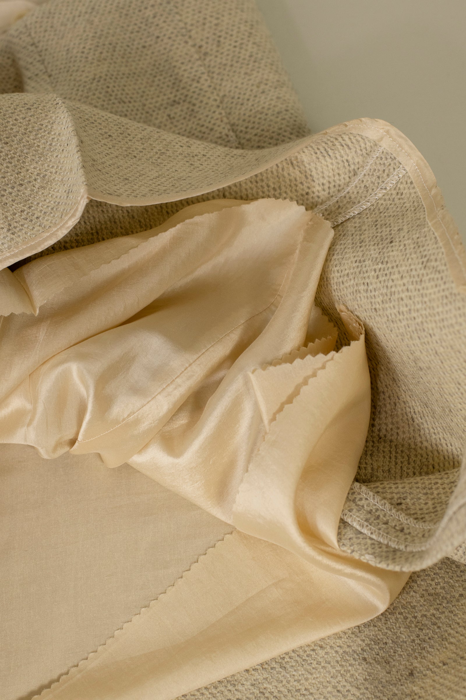 local farmers are often forced to bury, burn, or destroy their wool each shearing, leaving farmers at a deficit, but thanks to new local mills, we can now harvest it to make high quality, natural, biodegradable textiles.