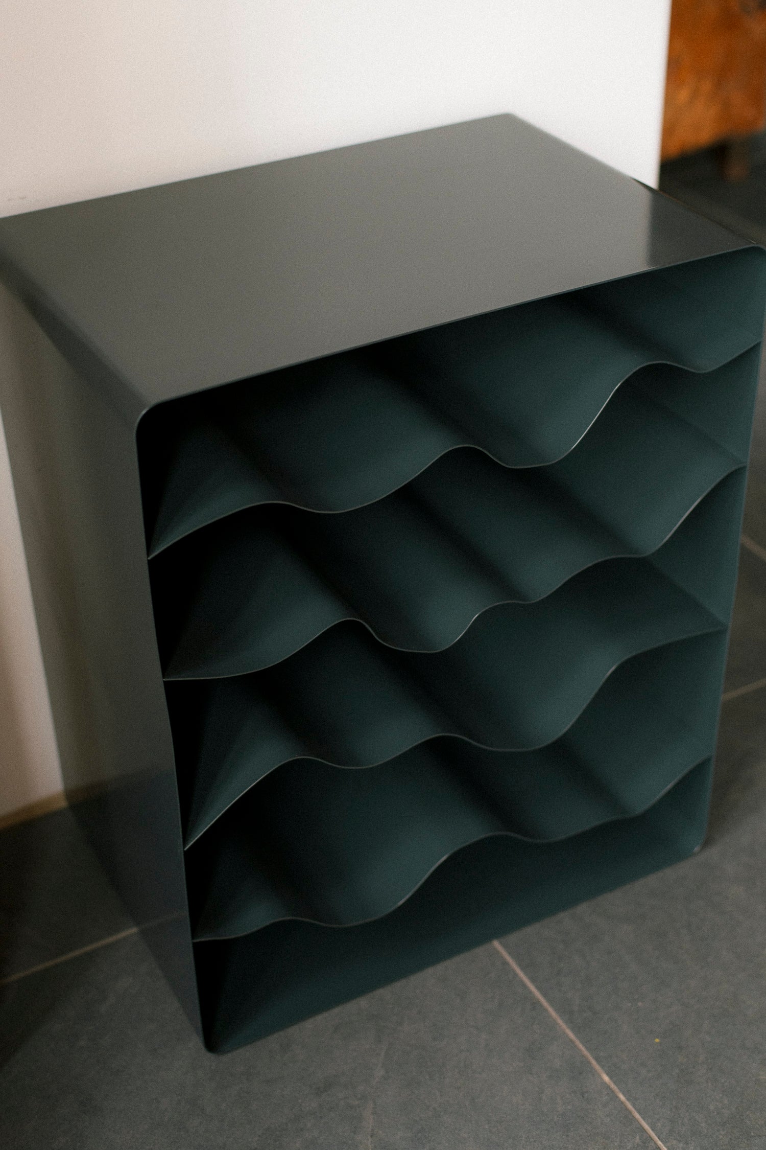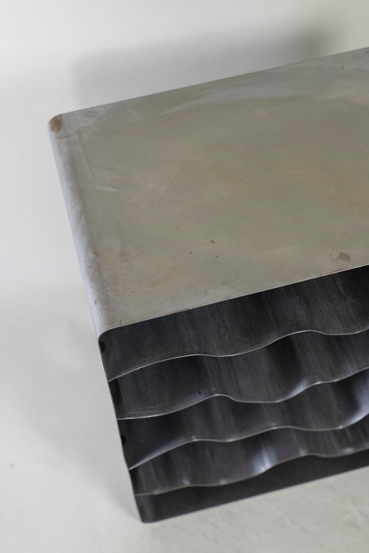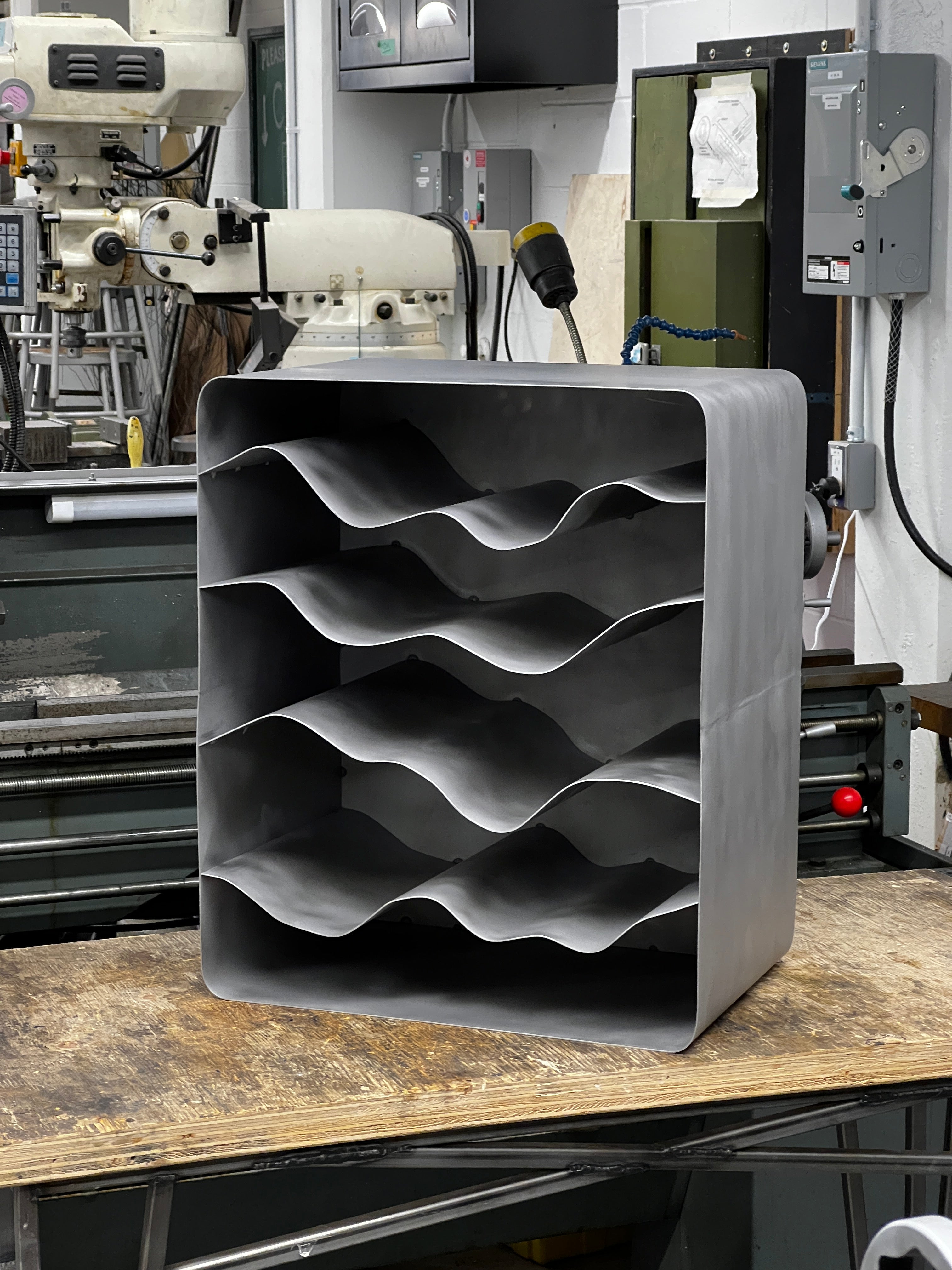 Following a singular pattern, each wave shelf is hand bent to come close to the initial design, yet each one has a unique life to it and varies slightly.