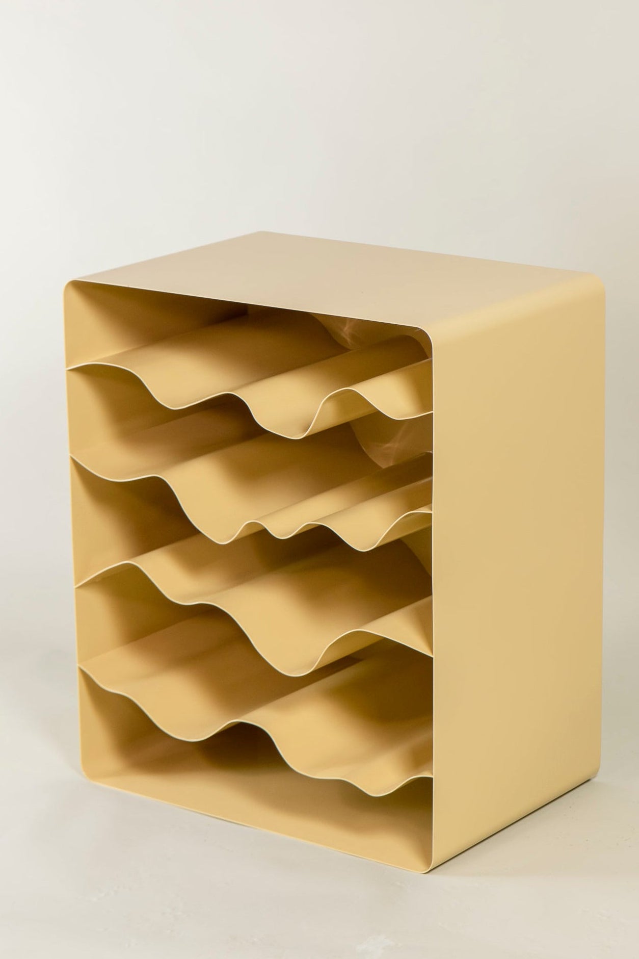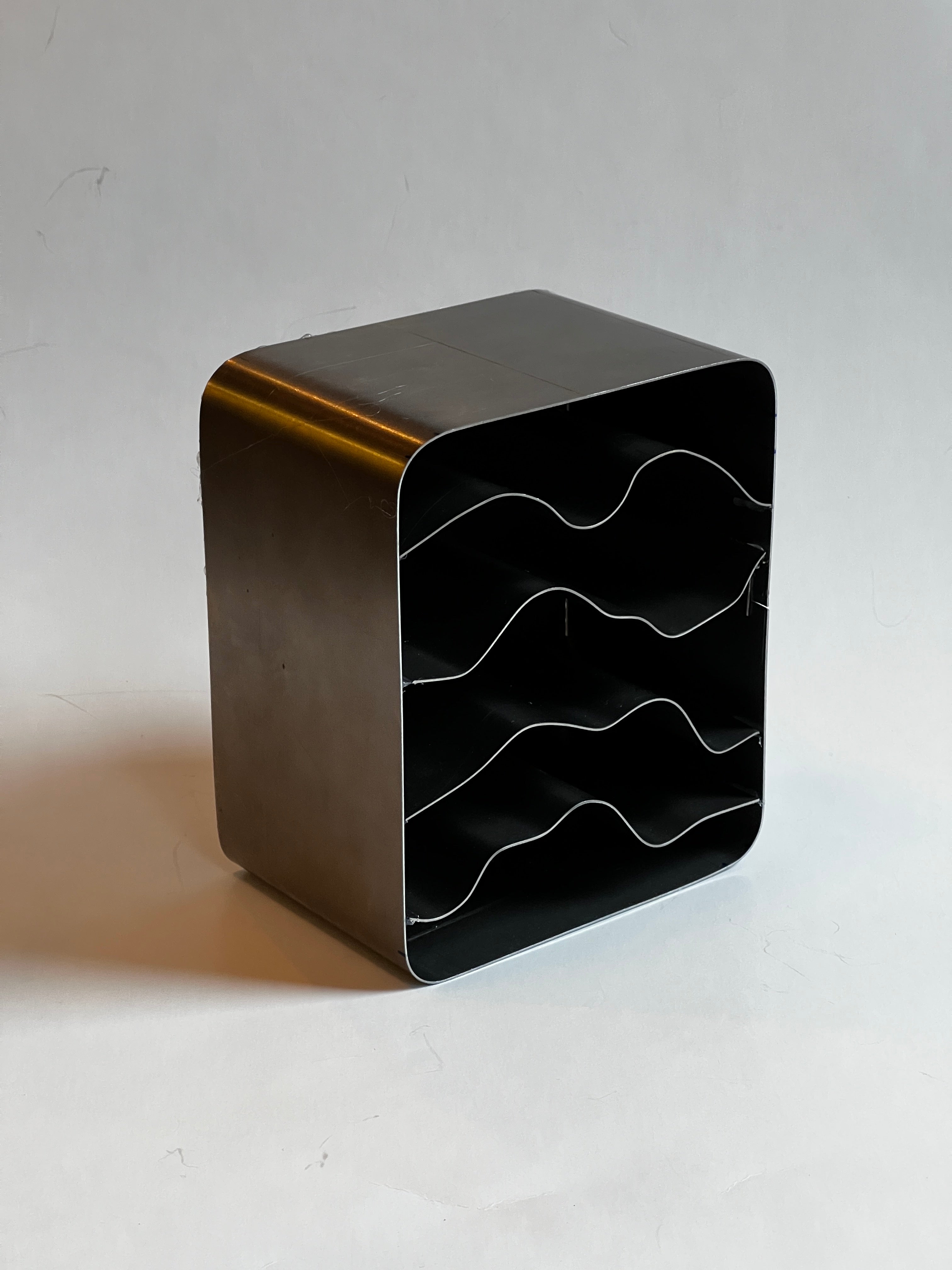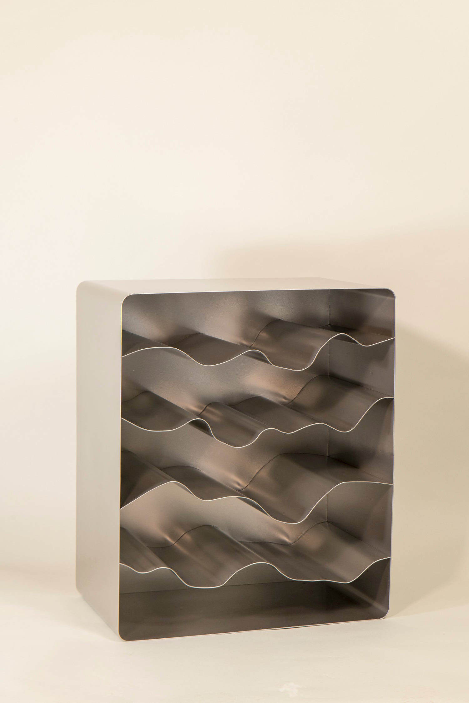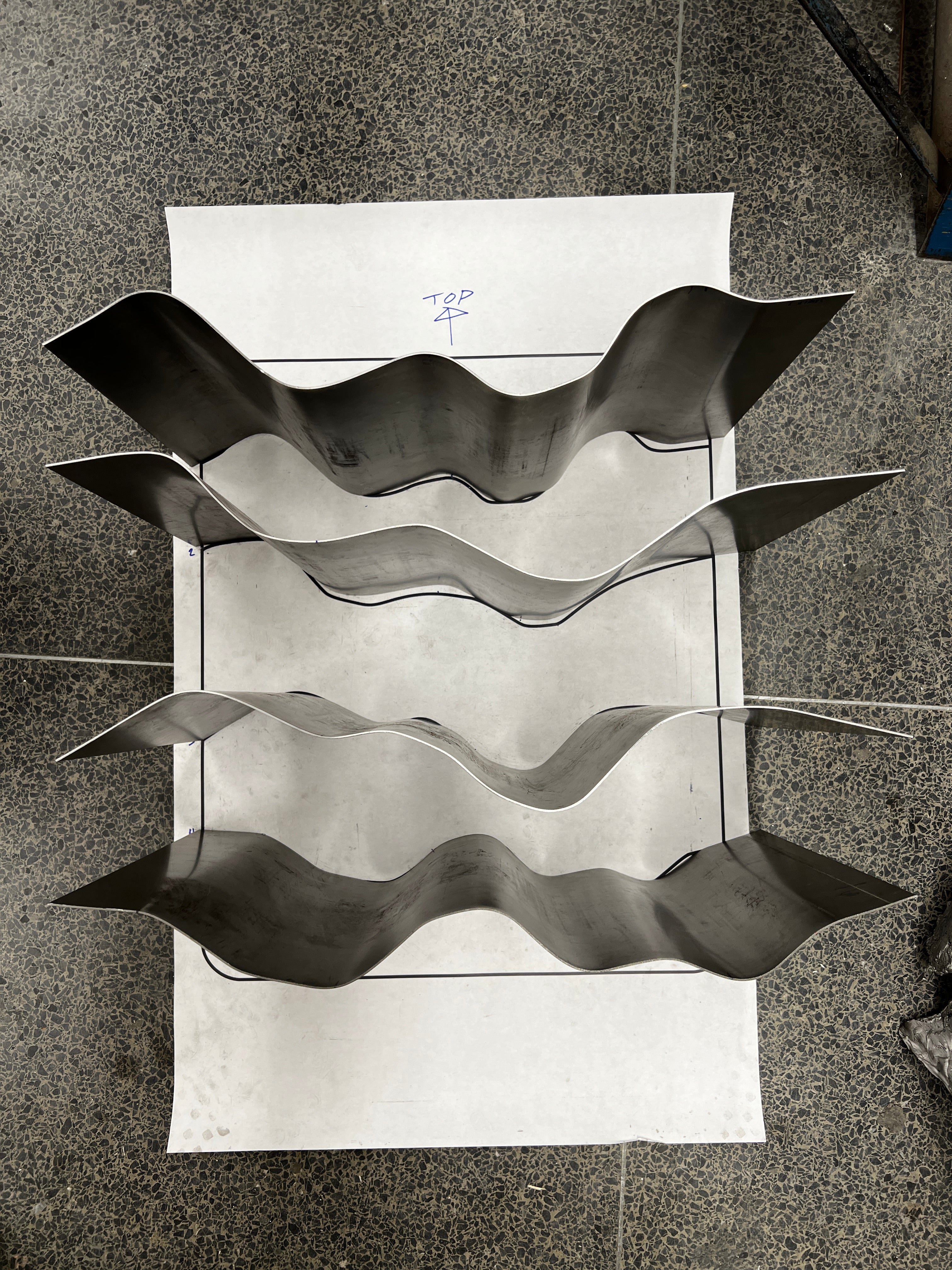 Following a singular pattern, each wave shelf is hand bent to come close to the initial design, yet each one has a unique life to it and varies slightly.