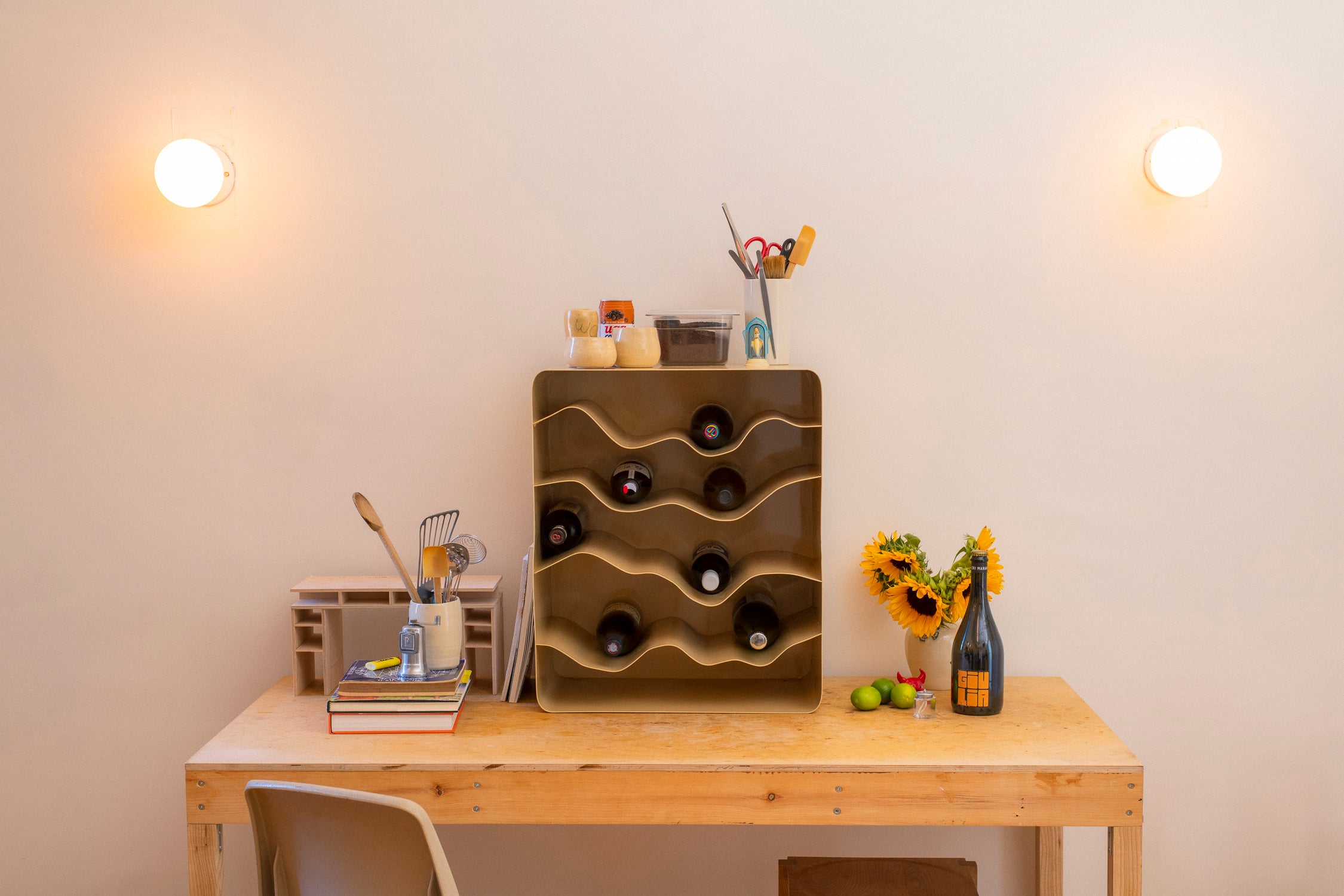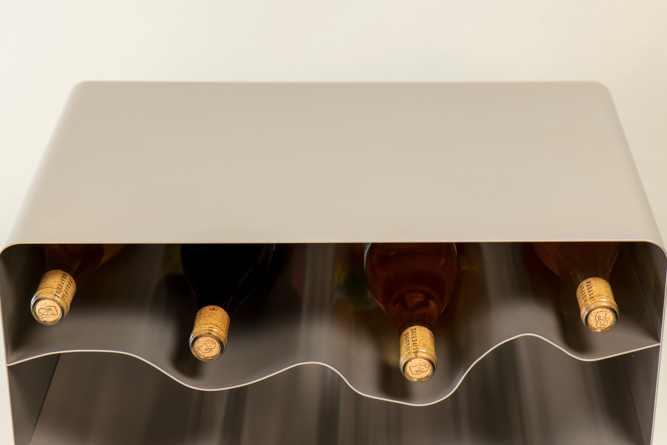 Made to represent the rolling hills of wine country, each shelf represents a terrain that is organic, special, and truly plays a part in how that bottle of wine tastes.