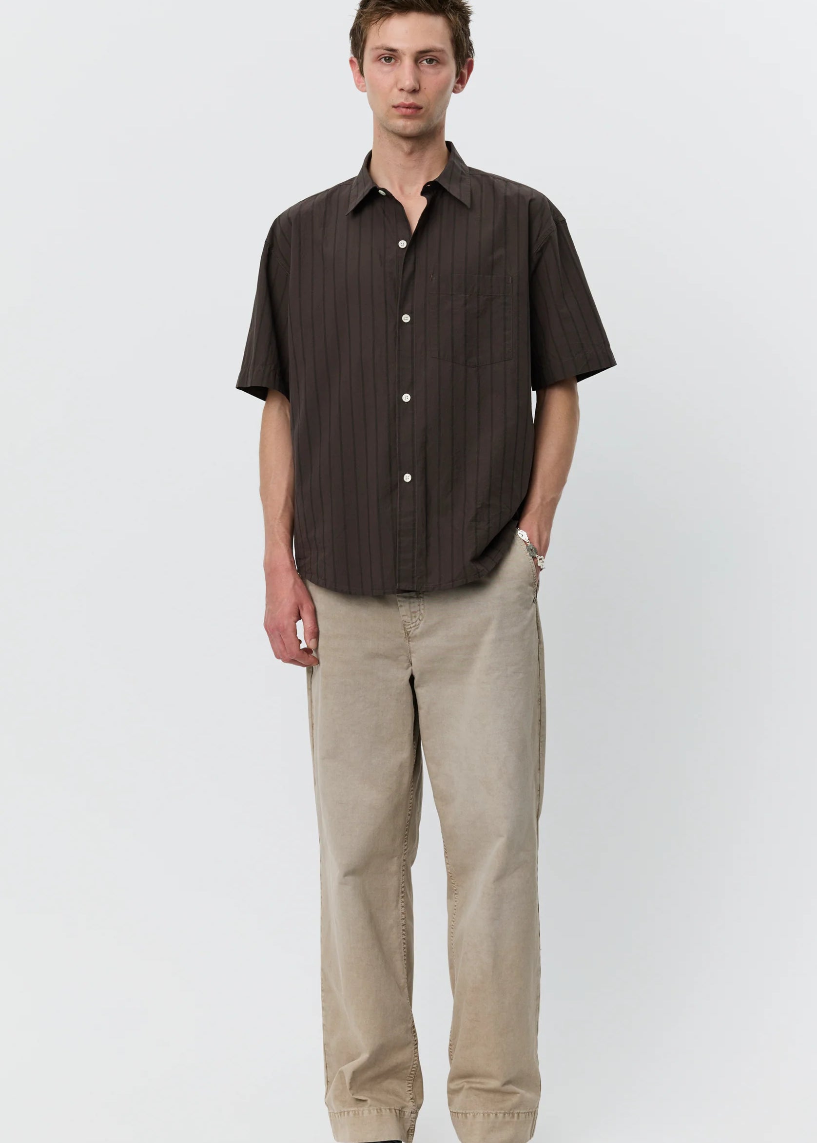 Founded in Copenhagen by Sigurd Bank, mfpen is shaped by a careful approach to materials and production. The brand works primarily with deadstock and surplus fabrics from European mills, extending the life of existing materials before creating anything new, and turns to recycled or responsibly sourced fibres only when necessary. The clothes are relaxed, well proportioned, and easy to wear, not fussy but considered and sophisticated, made to hold up over time.