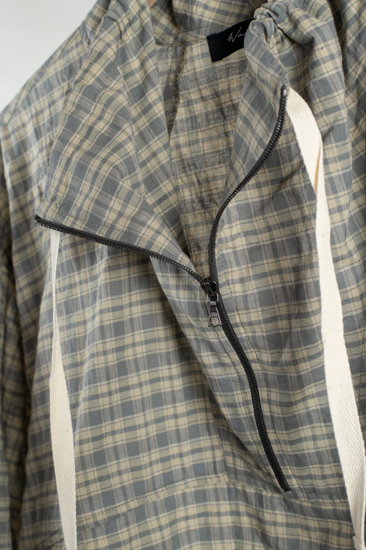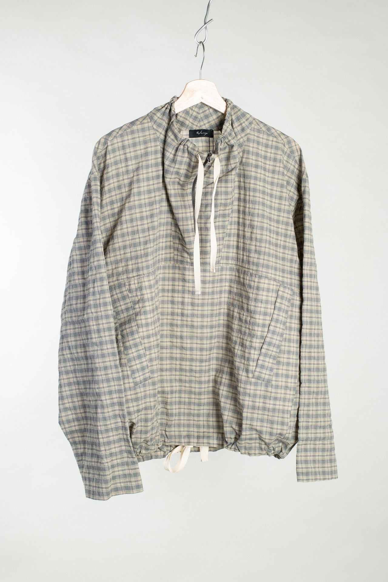 A light layering piece, this anorak offers a relaxed fit. Featuring a funnel neck with a half zip closure, the neck and side seams slant towards the front, with the side panel continuing to the back neck. Welt pockets are secured at the chest panel. A drawstring finish at the neck and body hem adds versatility and a sporty touch.