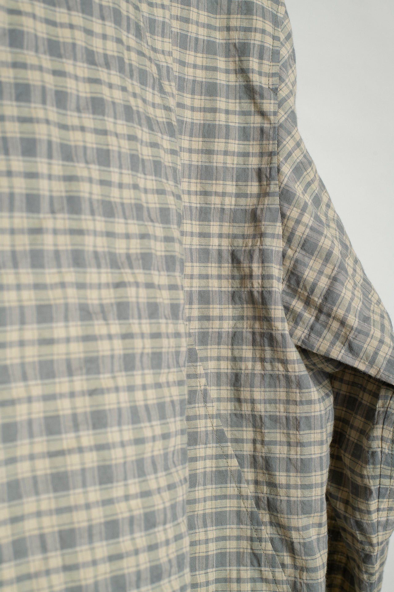 Made in a Japanese organic cotton, the fabric has a seersucker texture that complements the plaid pattern. Lightweight and breathable, this everyday top can be worn on its own or as an outerwear piece.