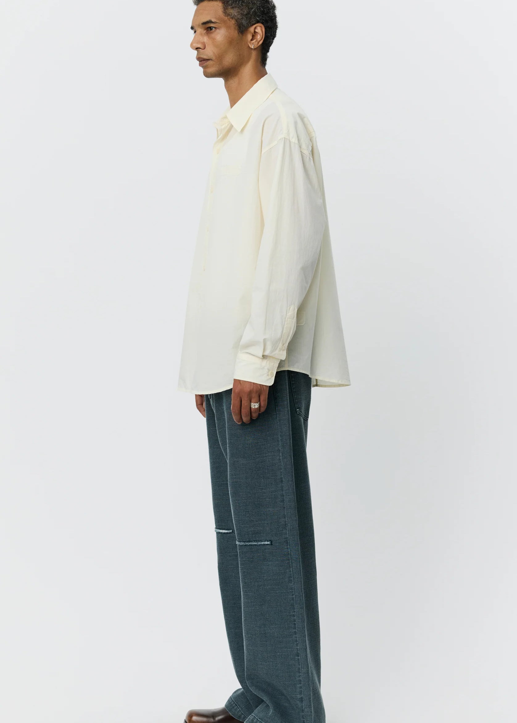 Founded in Copenhagen by Sigurd Bank, mfpen is shaped by a careful approach to materials and production. The brand works primarily with deadstock and surplus fabrics from European mills, extending the life of existing materials before creating anything new, and turns to recycled or responsibly sourced fibres only when necessary. The clothes are relaxed, well proportioned, and easy to wear, not fussy but considered and sophisticated, made to hold up over time.