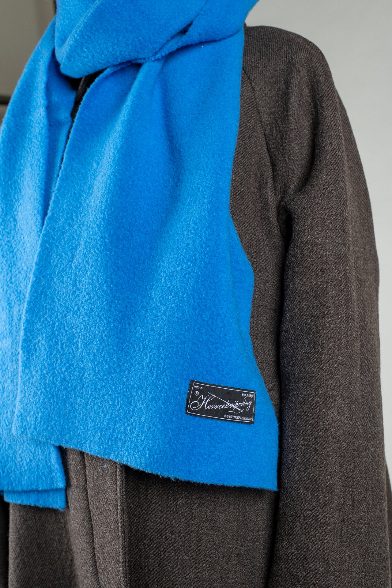 The Wool Scarf is made from a soft wool with a subtle pilling effect. Colours are obtained with an artisanal single dyed procedure. Finished with an mfpen Herreekvippering label.