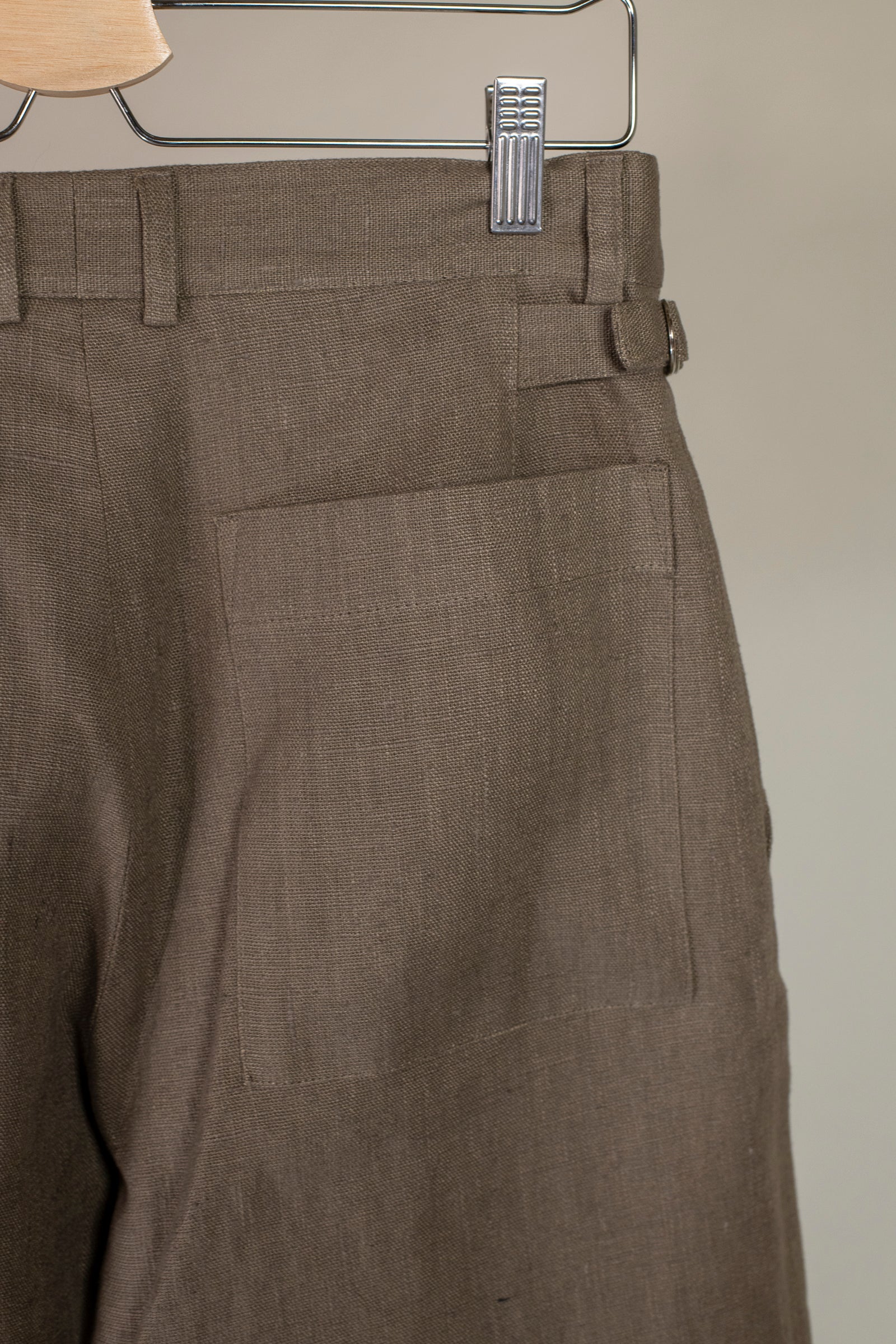Inspired by French workwear, these tailored shorts have a relaxed fit. Featuring cinching D-ring straps connected to the front slash pocket opening, they allow the wearer to adjust the fit at the waist. A reverse pleat at the waist creases down the leg for a sophisticated look while a simple patch pocket adds functionality in the back.
