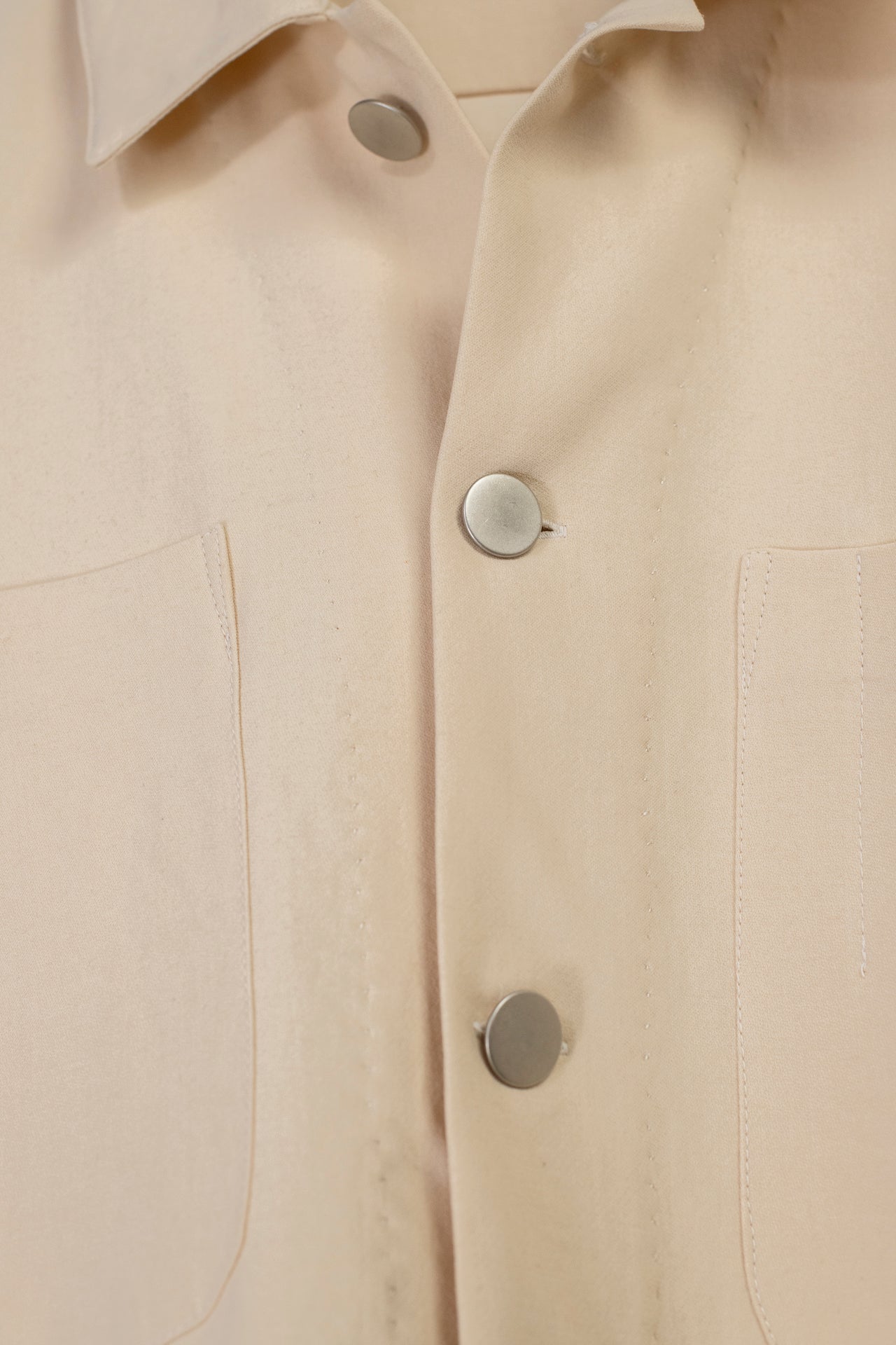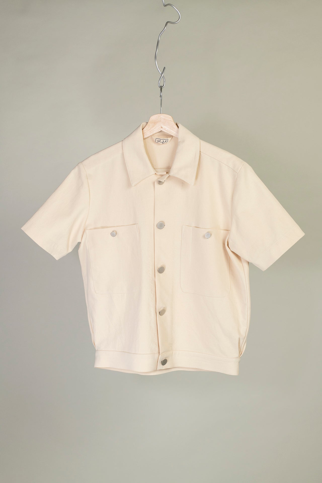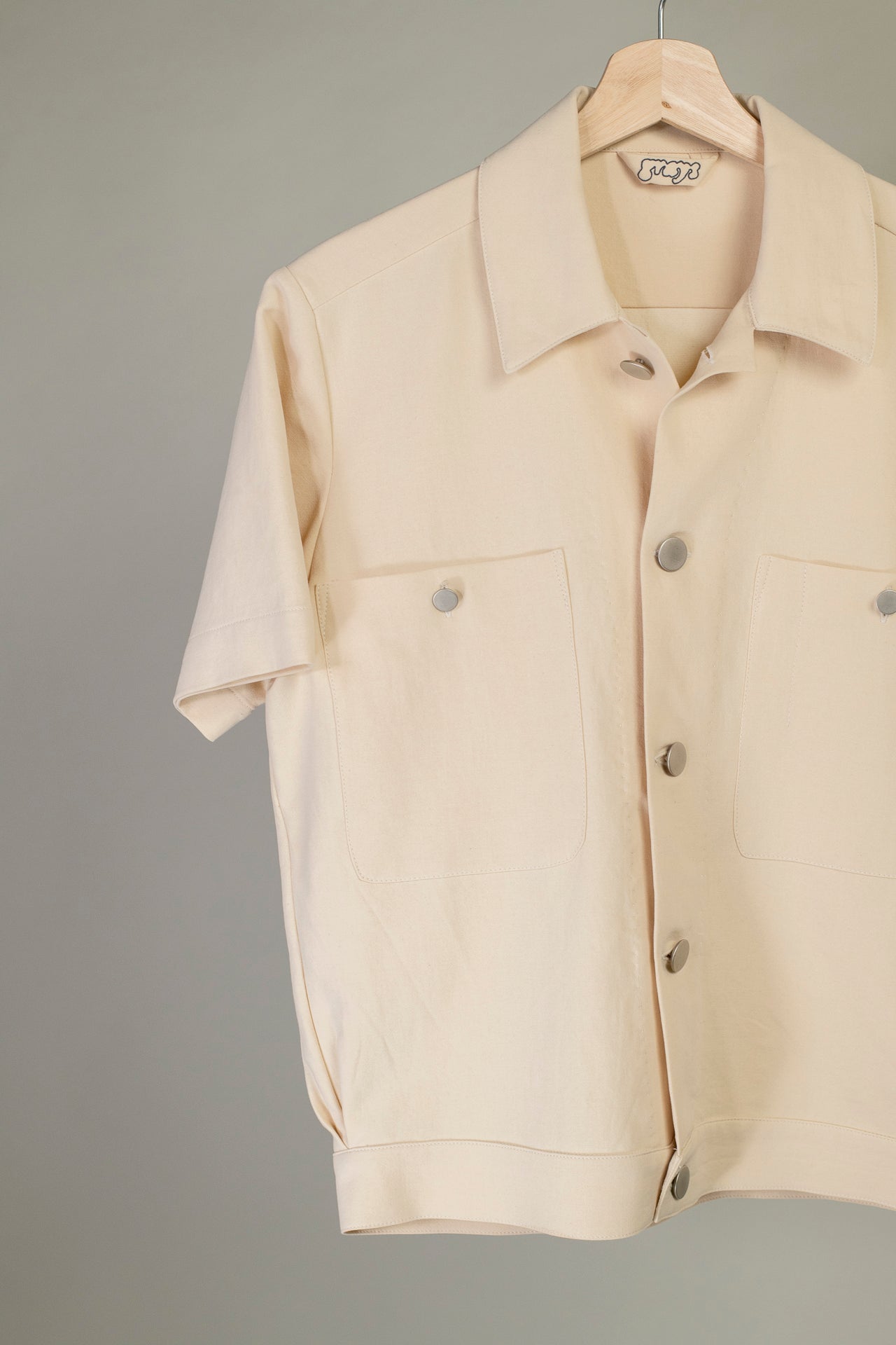 This cotton/ angora wool mix is in a natural colour. The cotton provides some stiffness, making it seem structured, while the wool gives a body and softness. This shirt can work dressed up or worn quite casually.