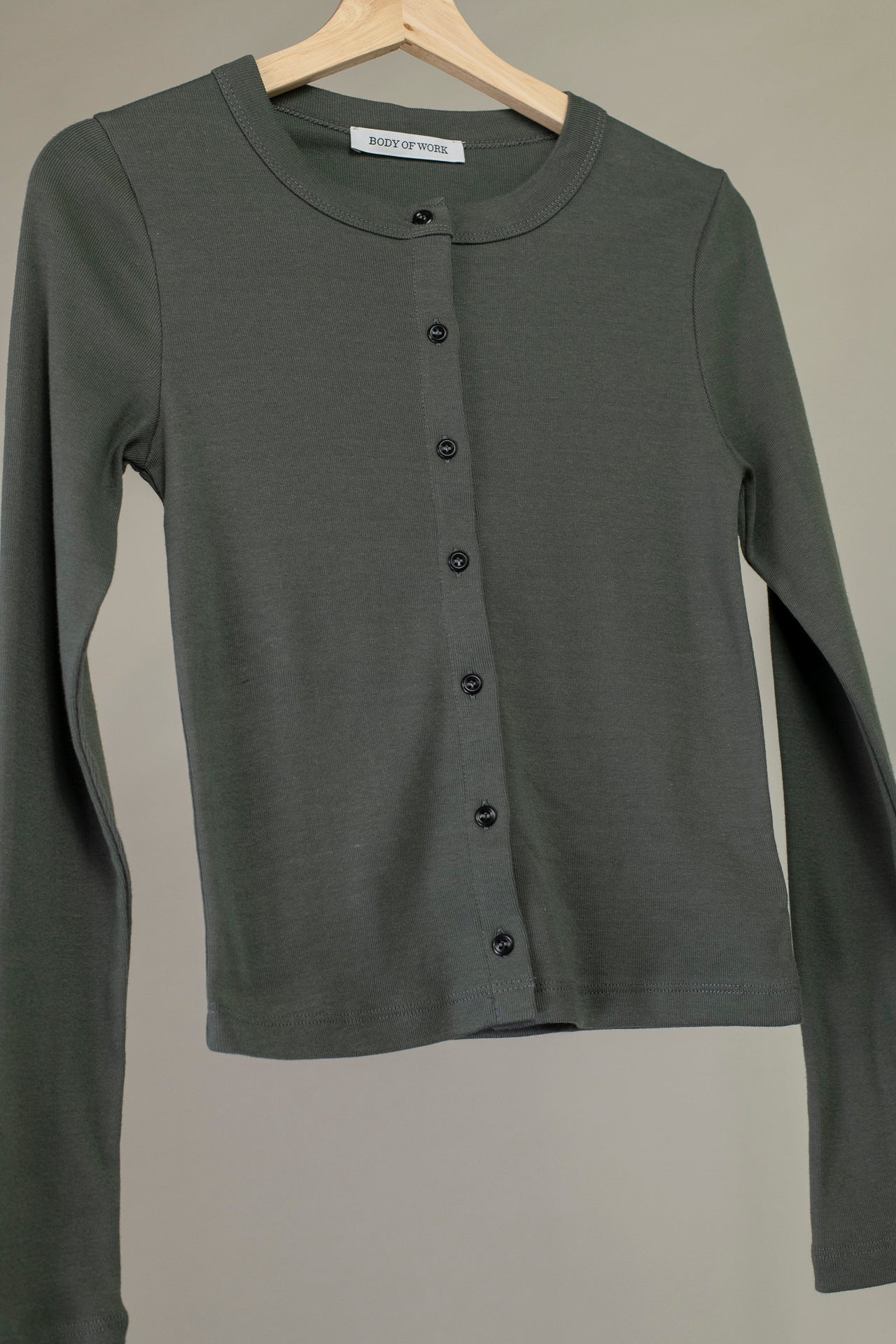 The timeless Magnolia Cardigan is crafted from a 100% cotton, mid-weight baby rib enzyme washed for a soft hand feel featuring a placket finished with plant-based Corozo buttons. Designed, knit, dyed, cut and sewn in Canada.