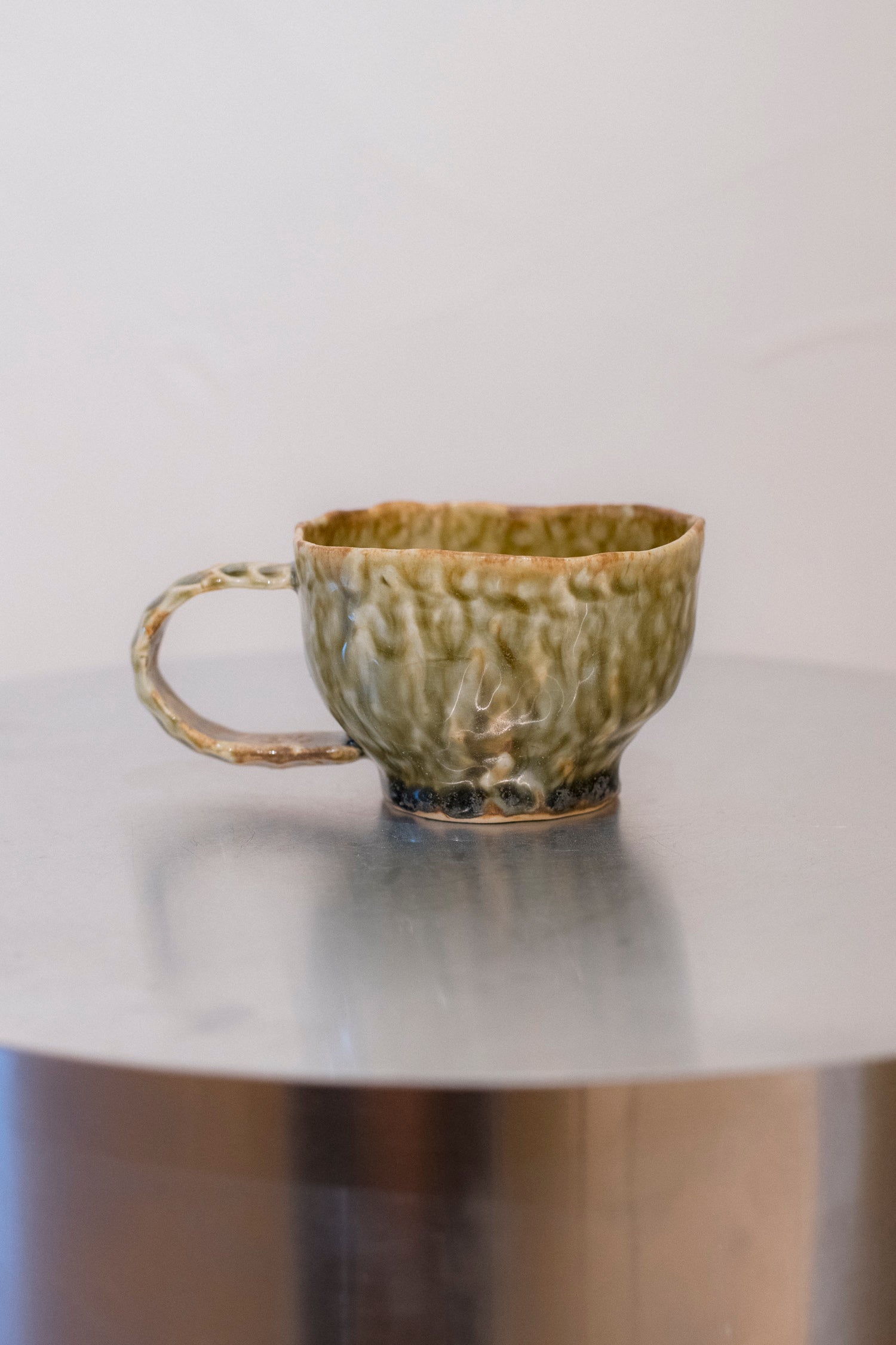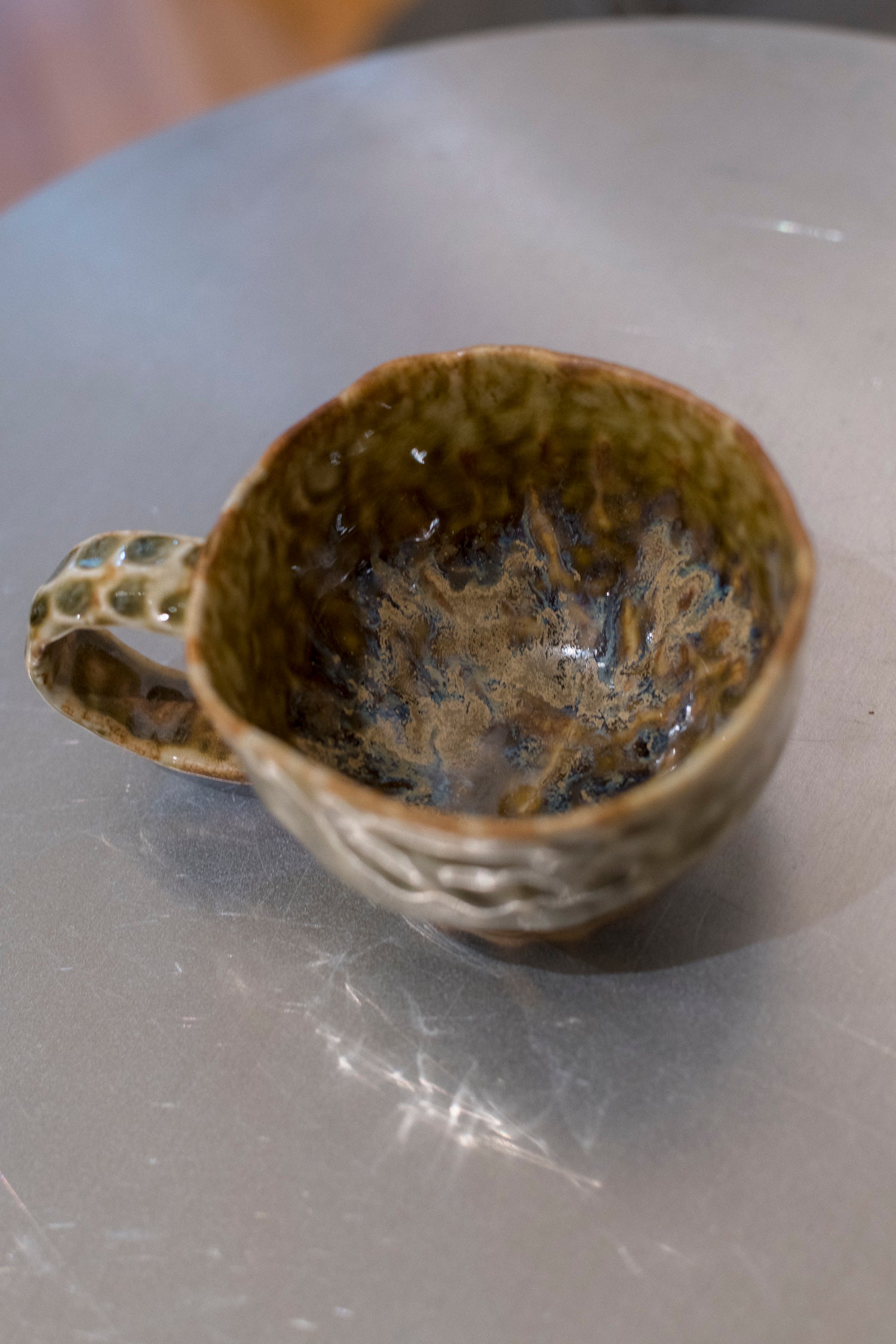 crafted through the intimate art of hand-pinching, this collection of ceramic tableware embodies a profound exploration of my craftsmanship. Inspired by my passion for coffee, each piece is meticulously designed to complement various coffee types, from the rich depths of espresso to the frothy heights of cappuccino. Drawing from the textures and elements of nature – sand, water, and stones – the surfaces of these creations evoke a tactile connection to the earth.