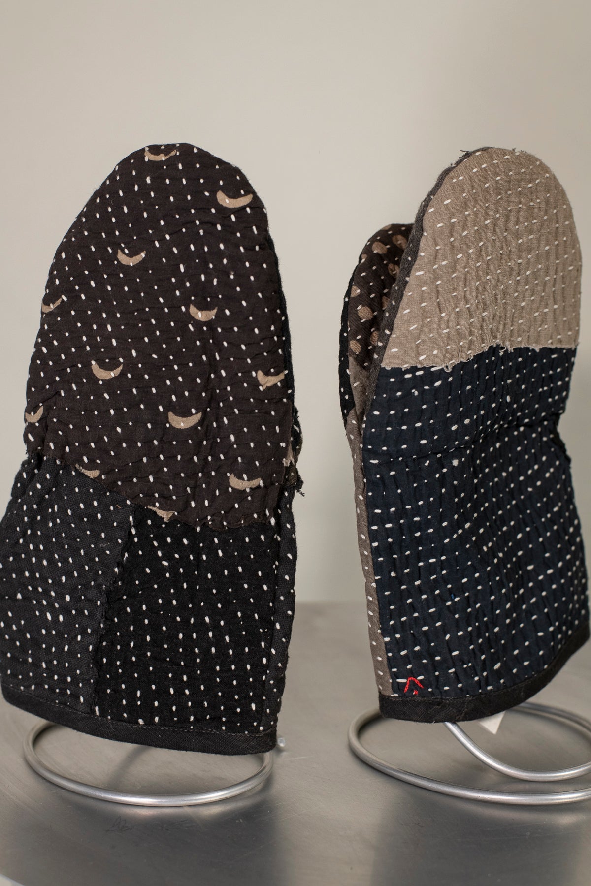 Hand made in India, these beautiful oven mits are made using a kantha hand quilting method where the wearer is able to see the intricate hand sewn details.