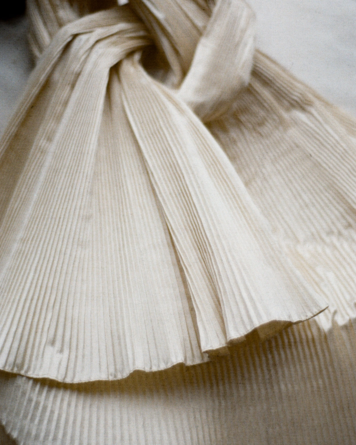 Crafted from 100% silk dupion and accordion pleated, it can be worn and tied in a multitude of ways.