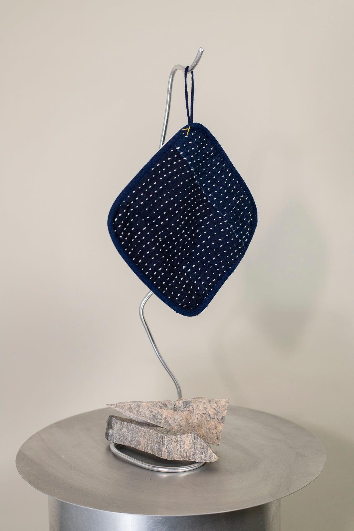 Hand made in India, this lovely pot holder is made using a kantha hand quilting method where the wearer is able to see the intricate hand sewn details. Add warmth to your home with this unique item.