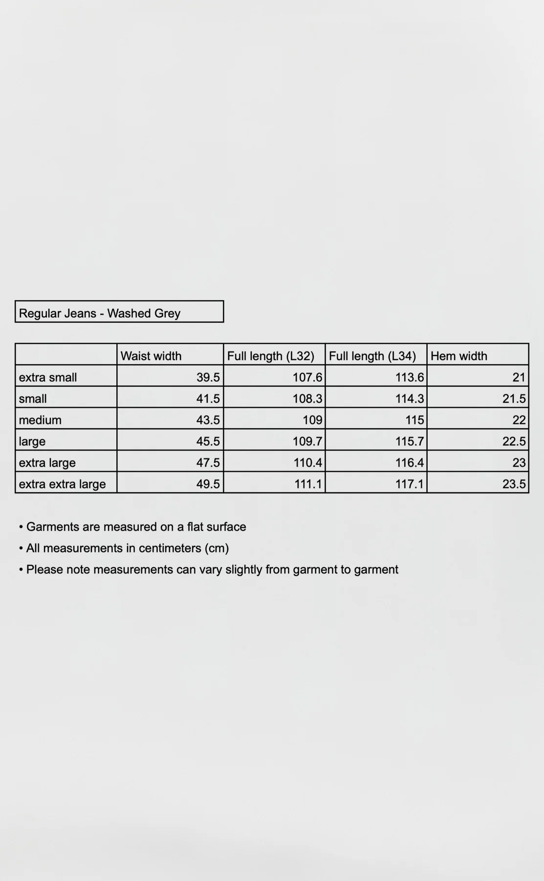 Relaxed regular fit. Model is 188 cm and wearing size medium in length 32. Please see measurements on the last slide.