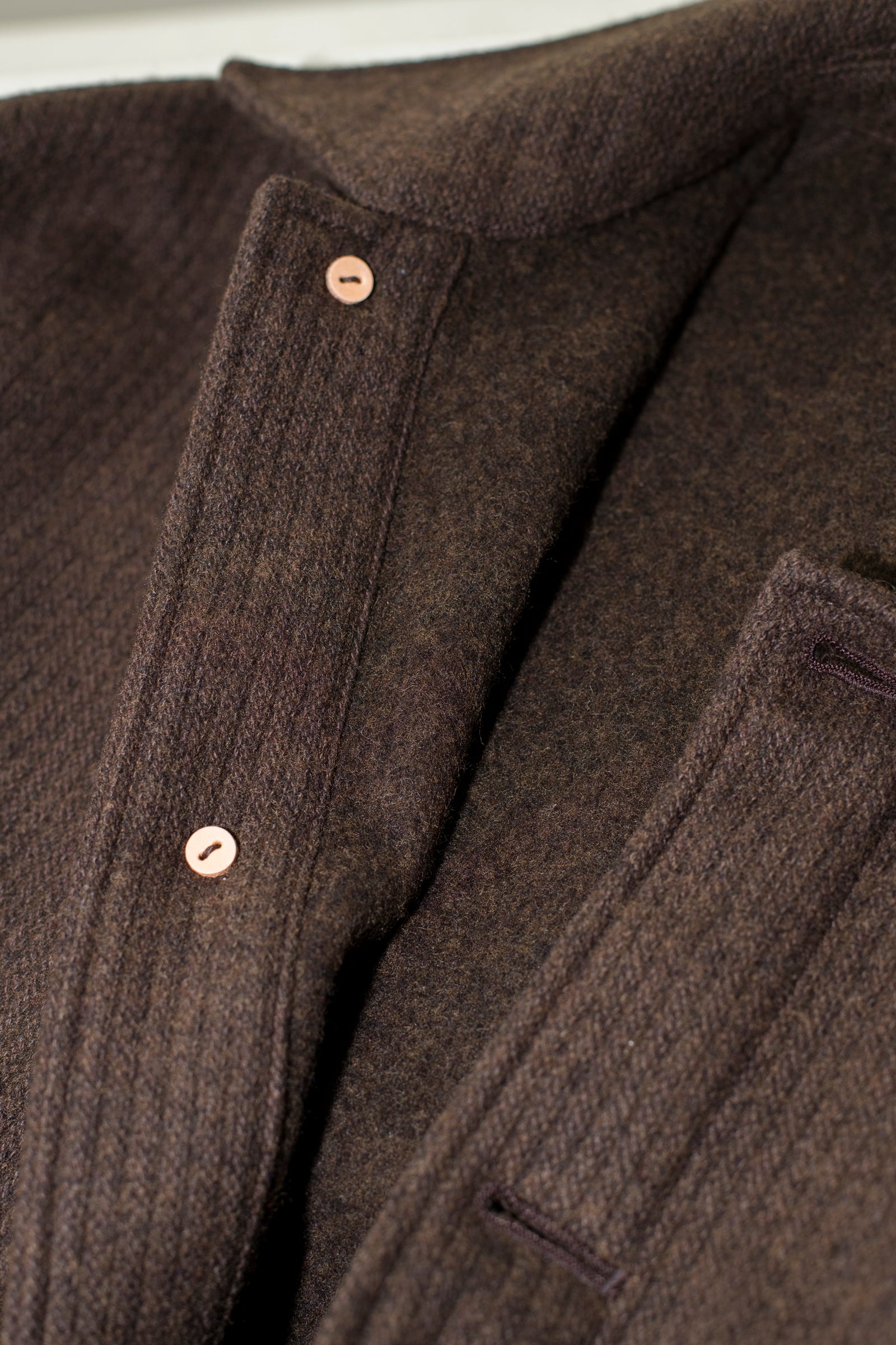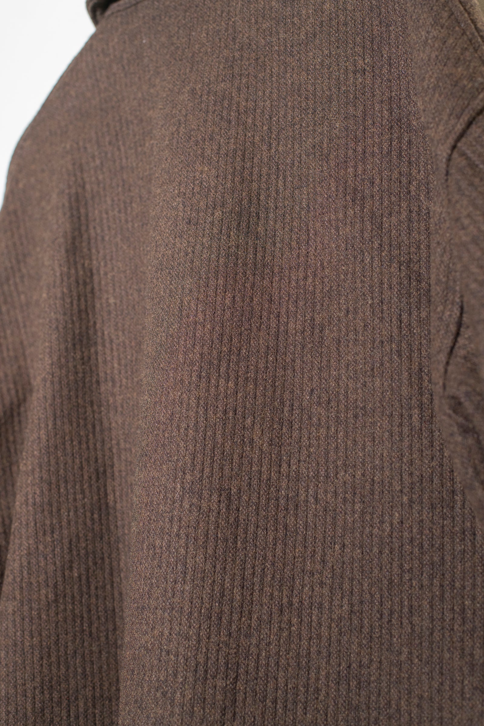 the reverse side has a raised finish, achieved at a finishing plant based in Izumiotsu, a mecca for blankets. In contrast to the surface, it has a fleece-like appearance, is extremely soft, fluffy, and bulky, and has outstanding warmth retention properties.