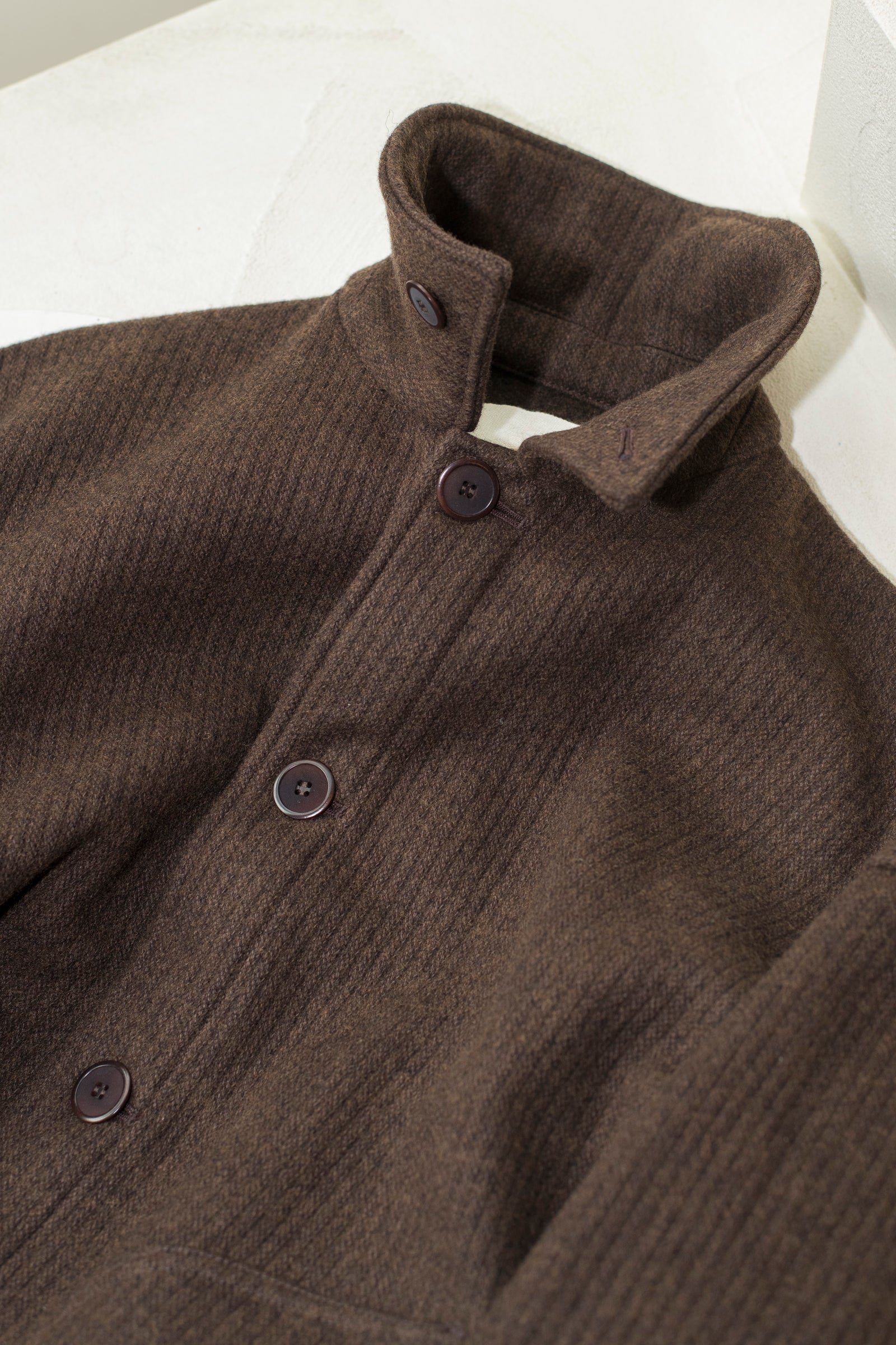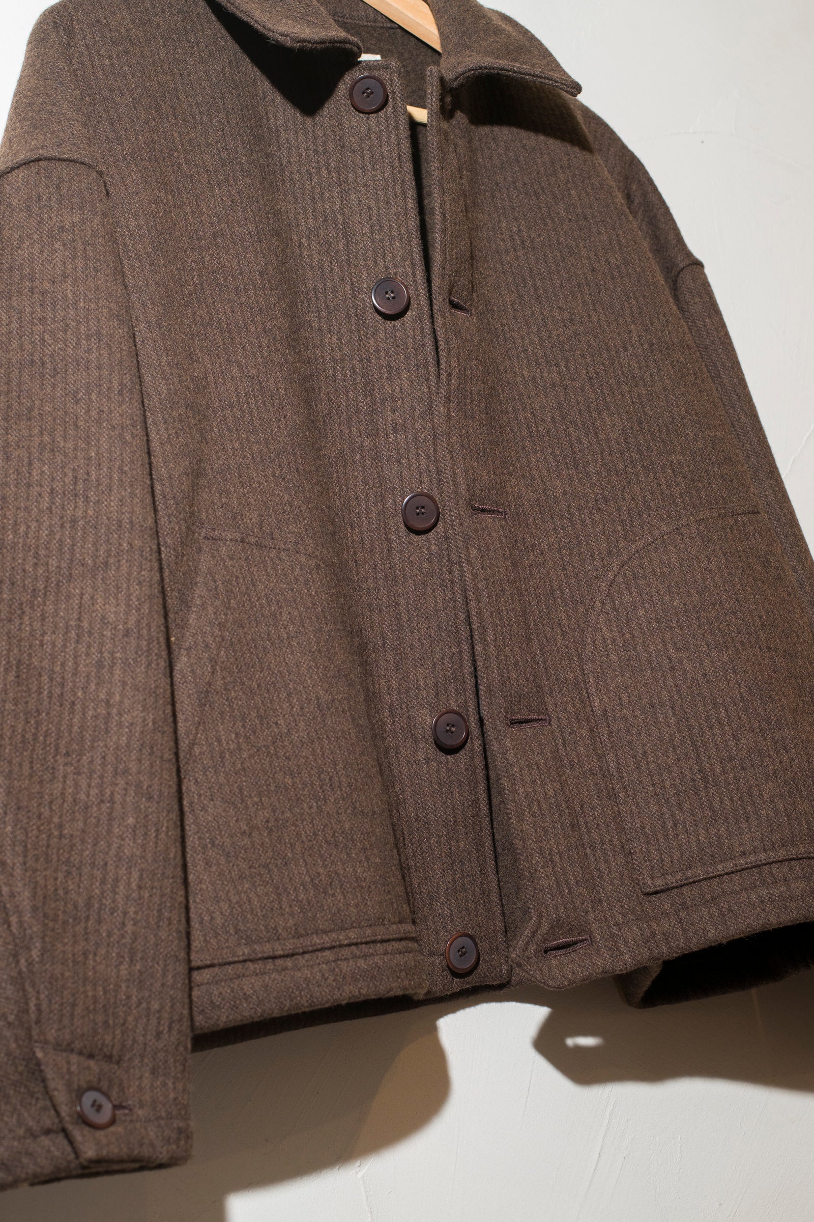 this work blouson is tailored in a classic and minimalist design. it features a minimalistic design that goes well with any outfit. it can be worn with the collar up. you can enjoy a vintage-like aging effect every time you wear it.