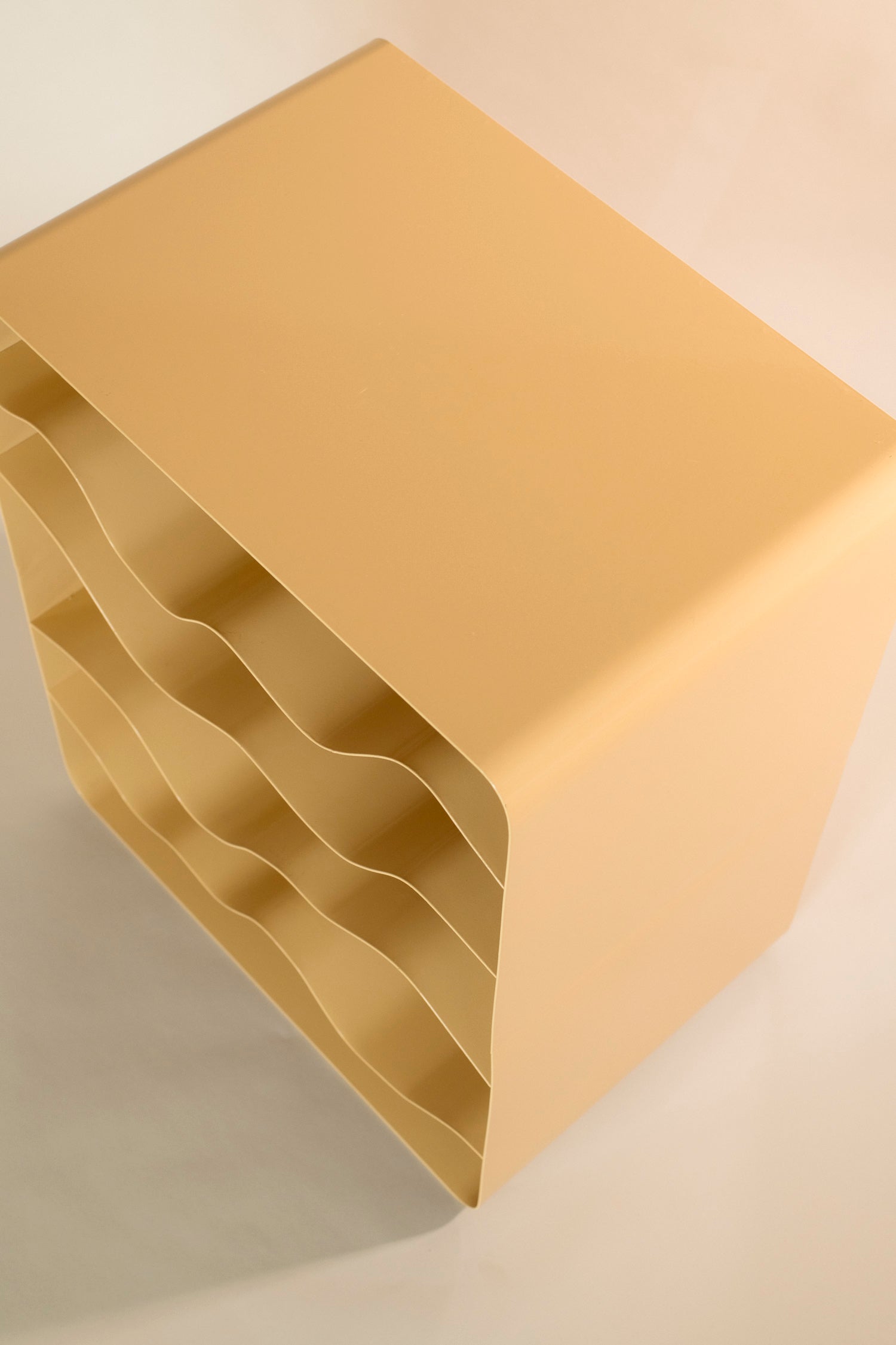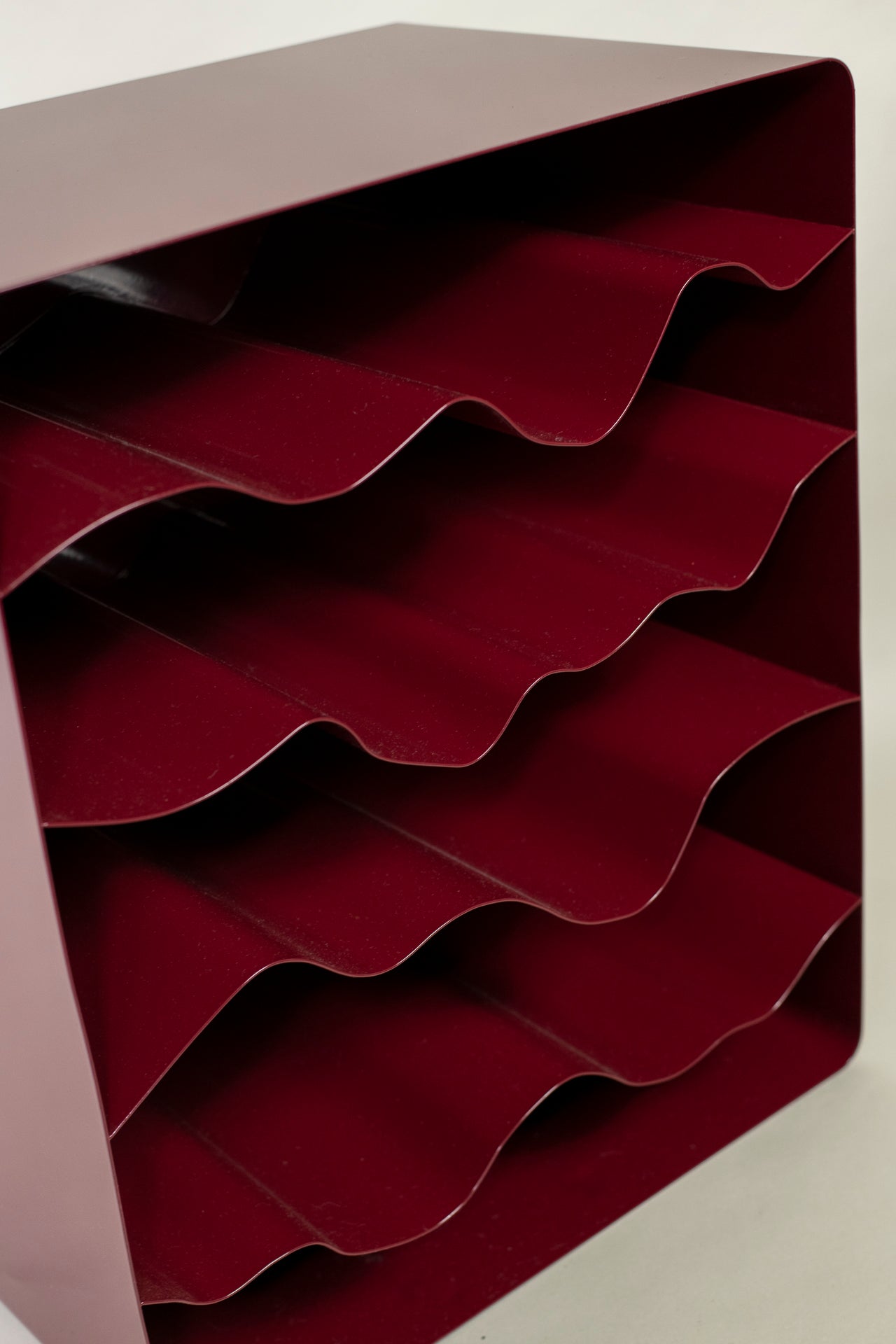 The design of Slope was inspired by the rolling hills of wine regions and the deep levels of soil that lay under each vineyard. The wavy form allows the rack to look artistically purposeful even while empty (which we hope it never is!). It functions as a storage unit for bottles but is truly a conversation starter that enhances a space as a functional yet sculptural piece.