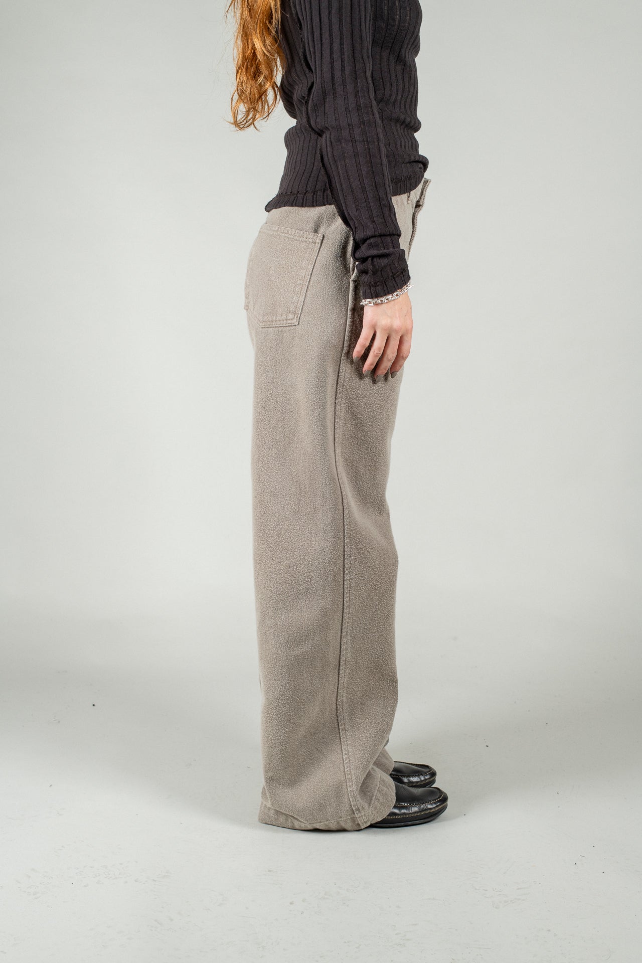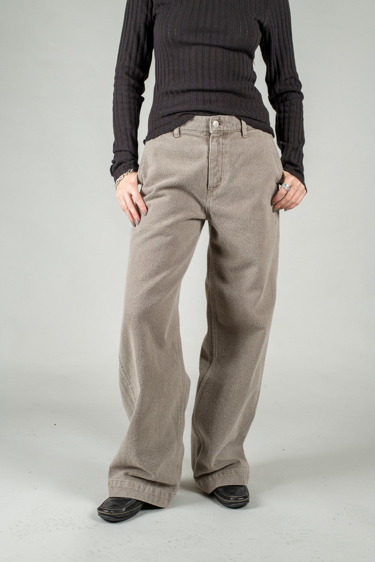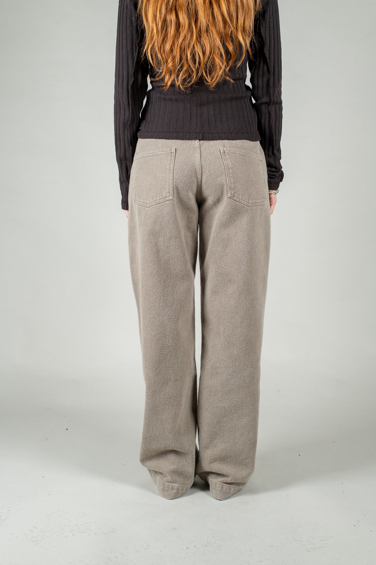 The Women's Straight Cut Jeans have a relaxed straight fit with a mid-rise. Featuring side pockets, rear patch pockets, metal button closure and YKK zip fly. Cut from a soft mineral dye washed organic cotton denim with a brushed surface in a light brown.