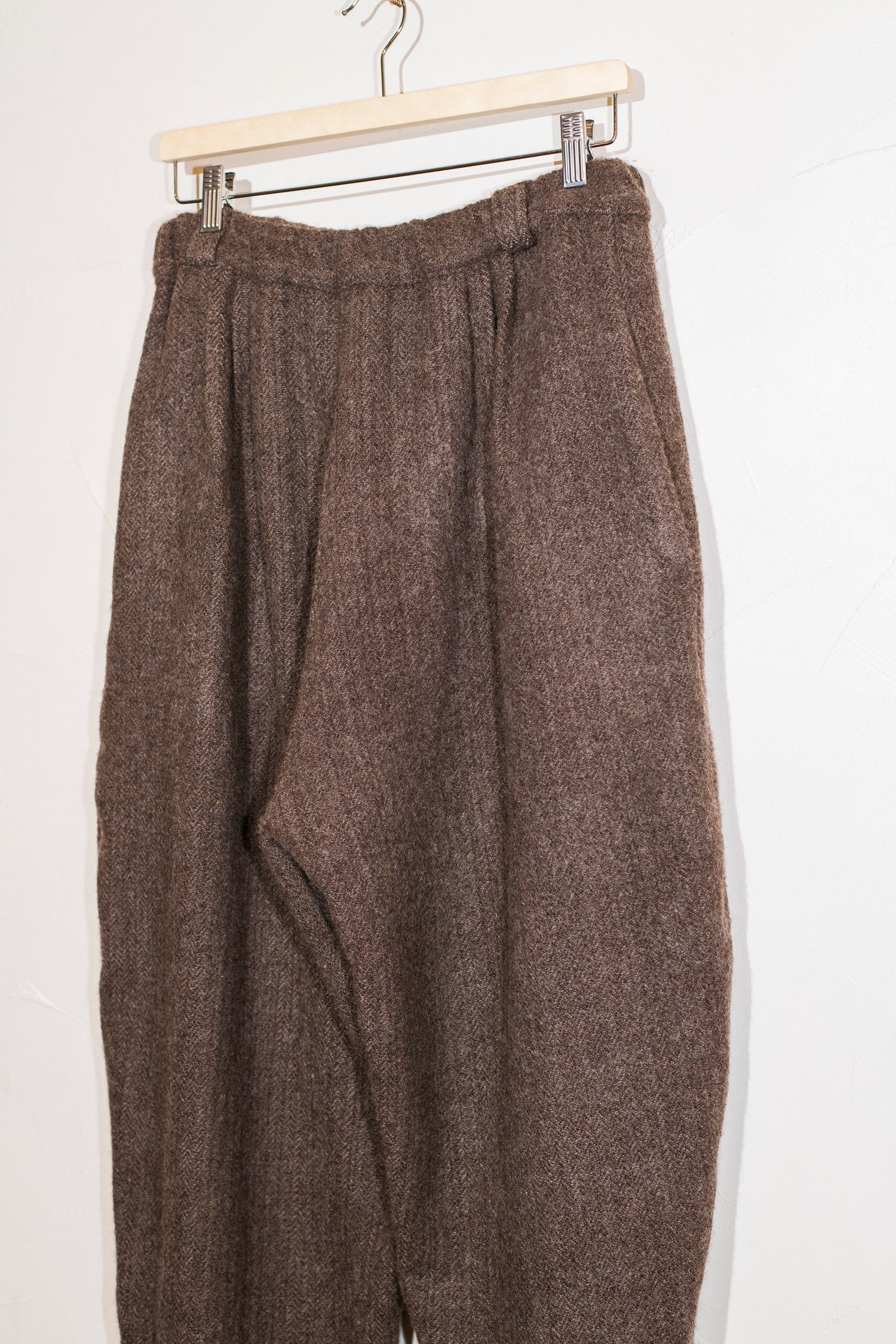 100% ontario wool pants, with a beautiful herringbone weave that creates depth through the textile.